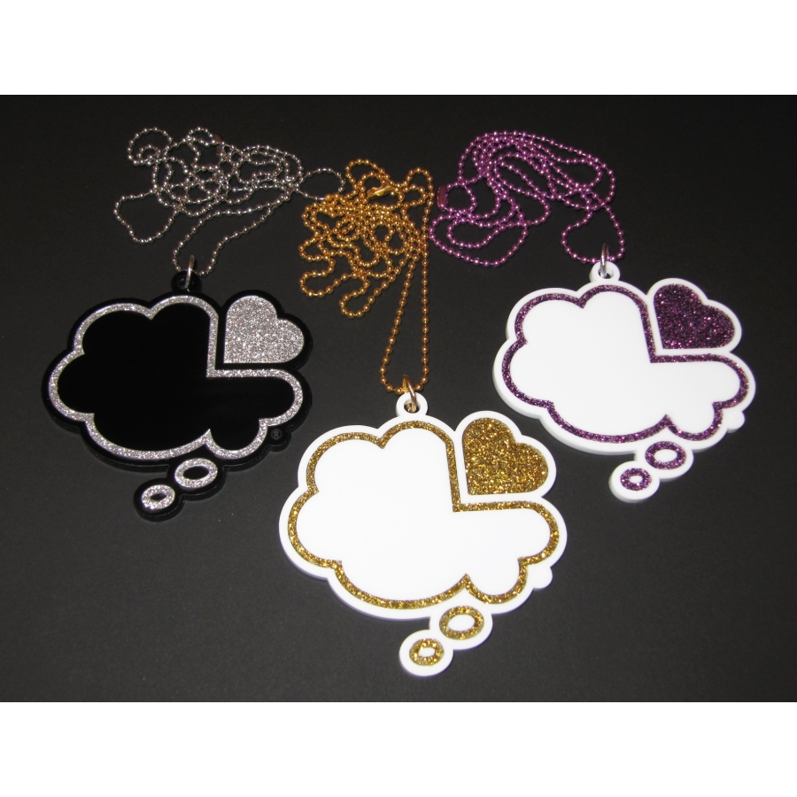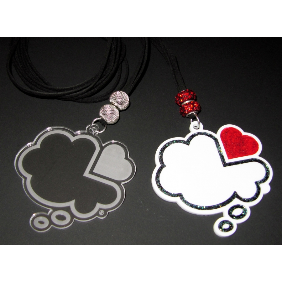 La collana simbolo della linea I Pensamore. Il nostro logo e il nostro motto in questo ciondolo da regalare a chi vuoi bene: una nuvola e un cuore che rappresentano il pensiero che va verso chi amiamo.